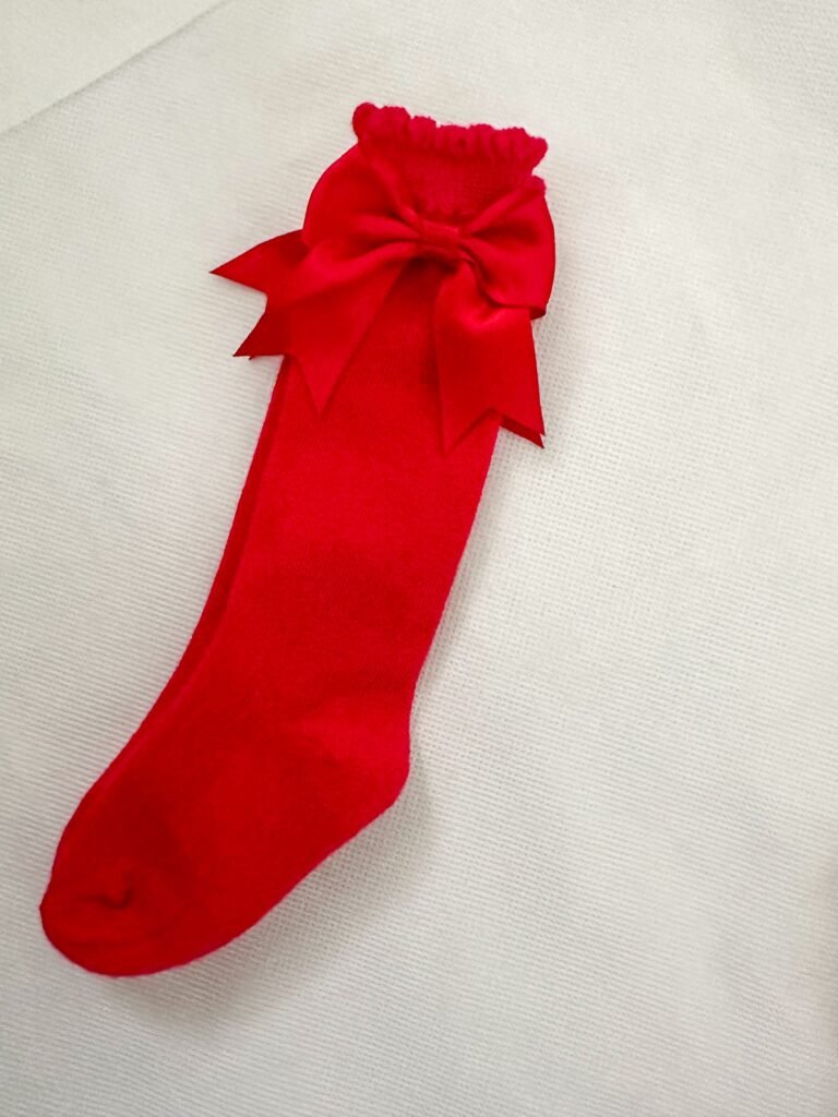 Ruby Red Knee High Socks and Velvet Lace Bow