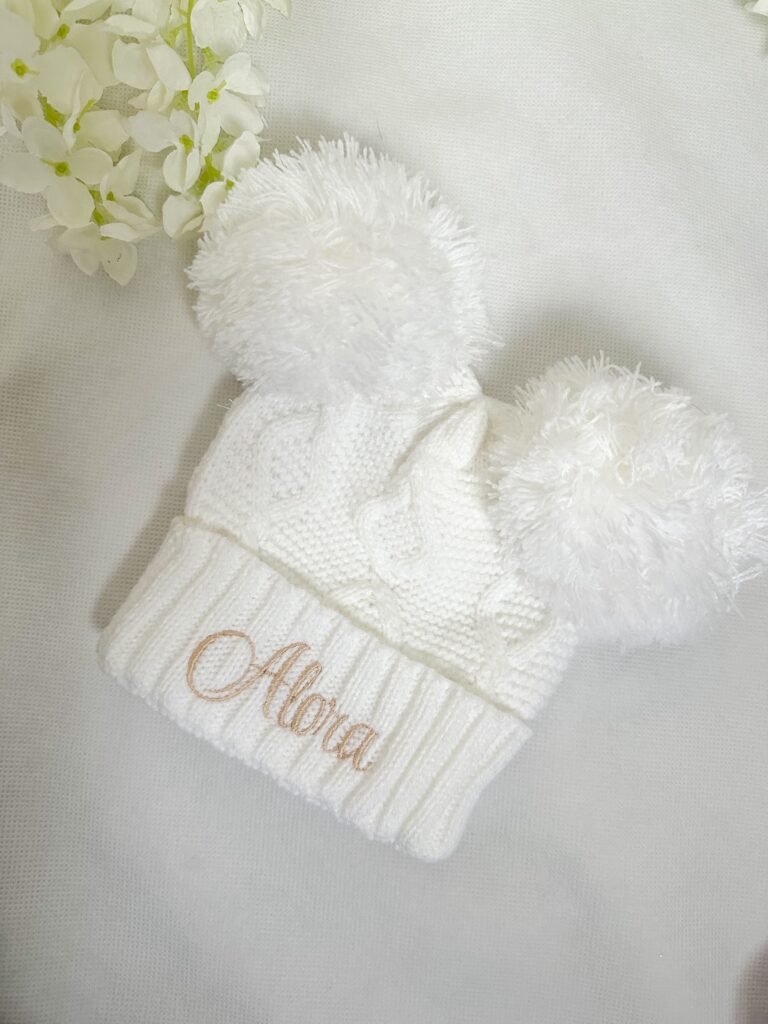 Double Pom Pom Hat- White
