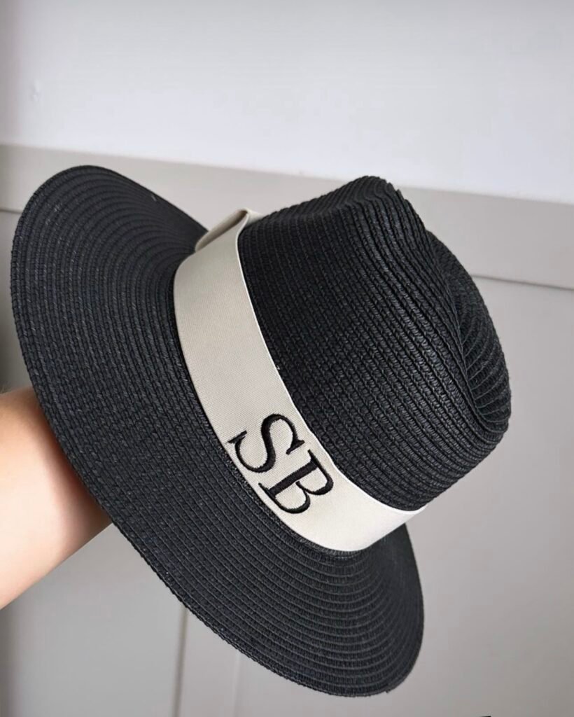 Girls Personalised Straw Fedora Hat – Black