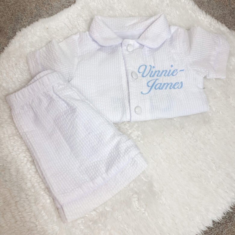 These pyjamas are personalised with “NAME” and on the back their age with a crown, fit for a total king.